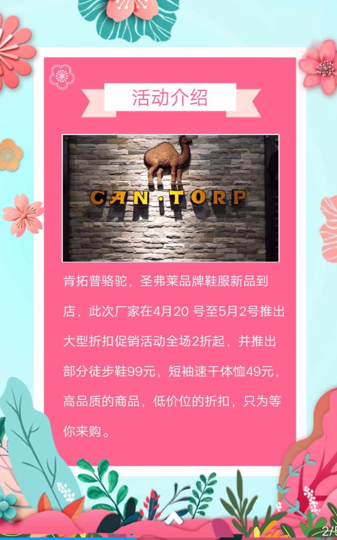 活动地址:特信商城3F针纺运动商场 活动时间:4月20日-5月2日